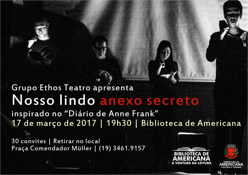 O espetáculo ” Nosso lindo anexo secreto” é resultado de uma pesquisa de linguagem cênica baseado no ” Diário de Anne Frank”.