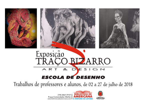 Exposição de mais de 40 desenhos de alunos e professores da escola de desenho Traço Bizarro (Americana e Sumaré)