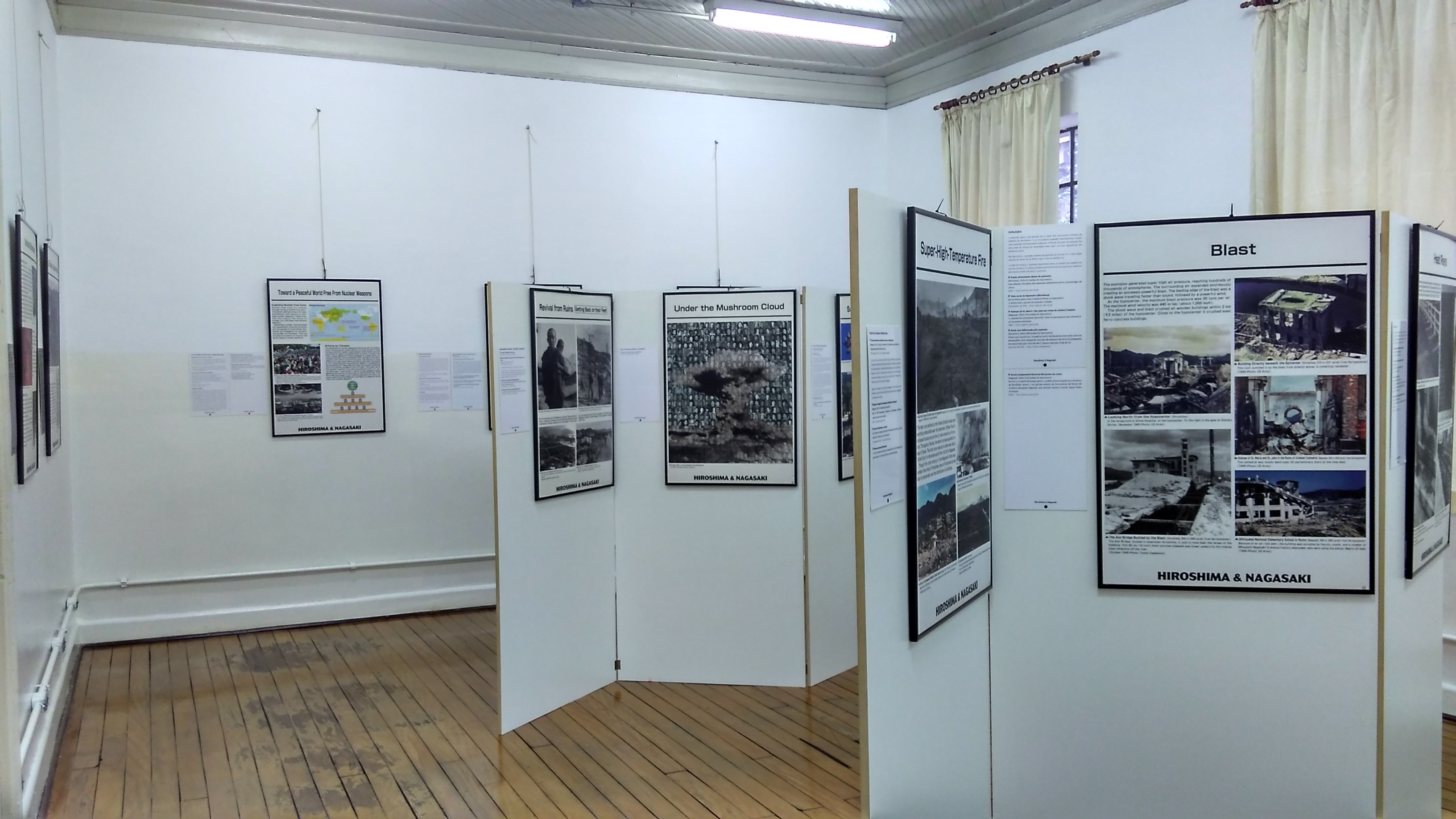 A exposição é composta por 30 painéis que apresentam imagens e textos sobre a história da destruição de Hiroshima e Nagasaki por bombas atômicas, e as nefastas consequências posteriores. Os painéis estão em inglês, com legendas em anexo, e foram produzidos com imagens históricas, pela própria Prefeitura de Hiroshima.