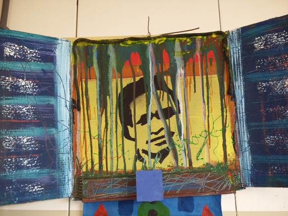 O conhecimento (conteúdo) foi construído não como cópia do tema e artistas estudados, mas como fruto do intenso trabalho de criação, significação e ressignificação. Na busca do entrelaçamento e fusão entre literatura, artes visuais e a vida. Os trabalhos partiram da criação de suportes inspirados nos estandartes da cultura popular e outros, poetizando para as modalidades artísticas: escultura, desenho, pintura, colagem e outras. Sempre considerando o objeto de estudo das artes visuais (a composição) – a forma e seus elementos específicos: cor, linha, plano, volume, textura e a expressão da palavra escrita.