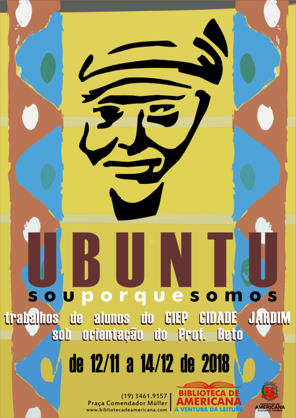 A exposição faz parte do Projeto: “Estandarte Ubuntu”, dos alunos de 4º e 5º anos do CIEP “Prof. Octávio César Borghi” (Cidade Jardim), composto por leituras e releituras práticas, inspirado na arte negra e afro-brasileira (grafismos, estamparia, pinturas faciais e corporais, mascaras, etc.) e nos artistas negros brasileiros; mesclando estilos e técnicas, aproveitando como suportes e recursos materiais/resíduos reaproveitados do cotidiano e do meio ambiente.