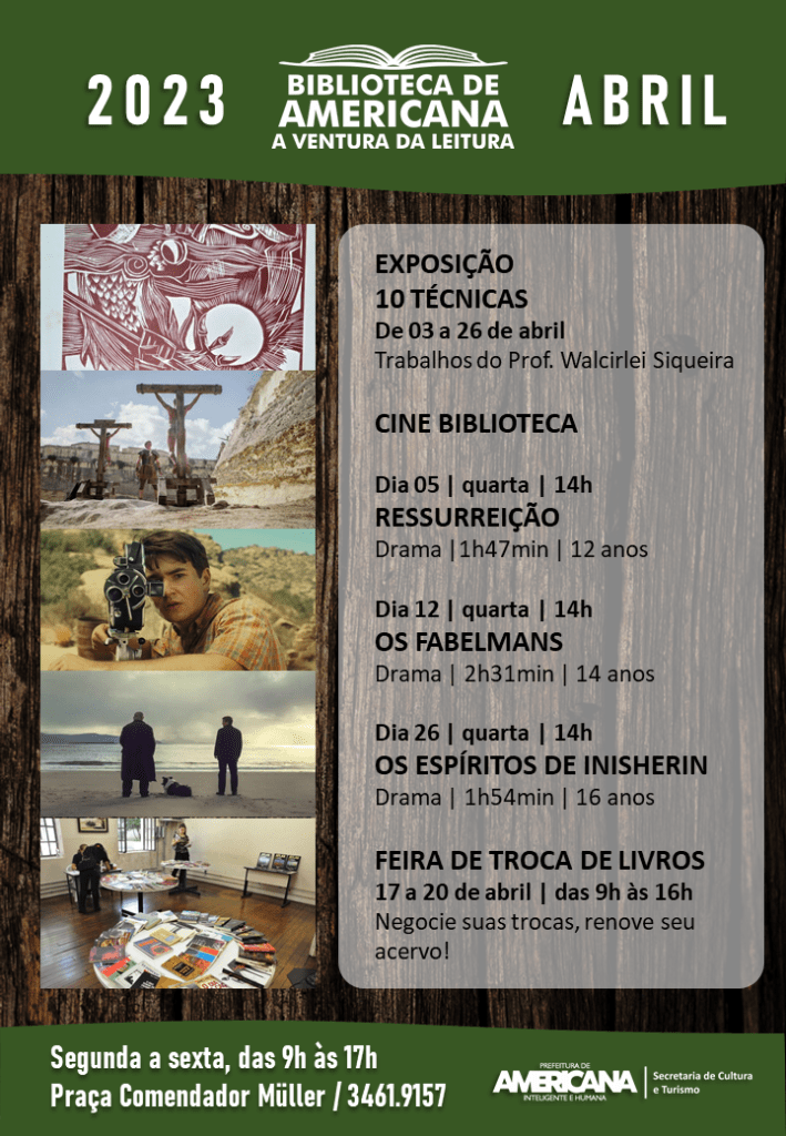 A Biblioteca de Americana realiza nova edição da Feira de Troca de Livros, de 17 a 20 de abril de 2023.