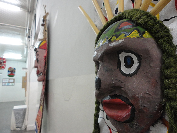 O trabalho com as “telas-máscara” direcionou um estudo para as modalidades artísticas: escultura, desenho, pintura, colagem e outras. Sempre considerando o objeto de estudo das artes visuais (a composição) – a forma e seus elementos específicos: cor, linha, plano, volume e textura.